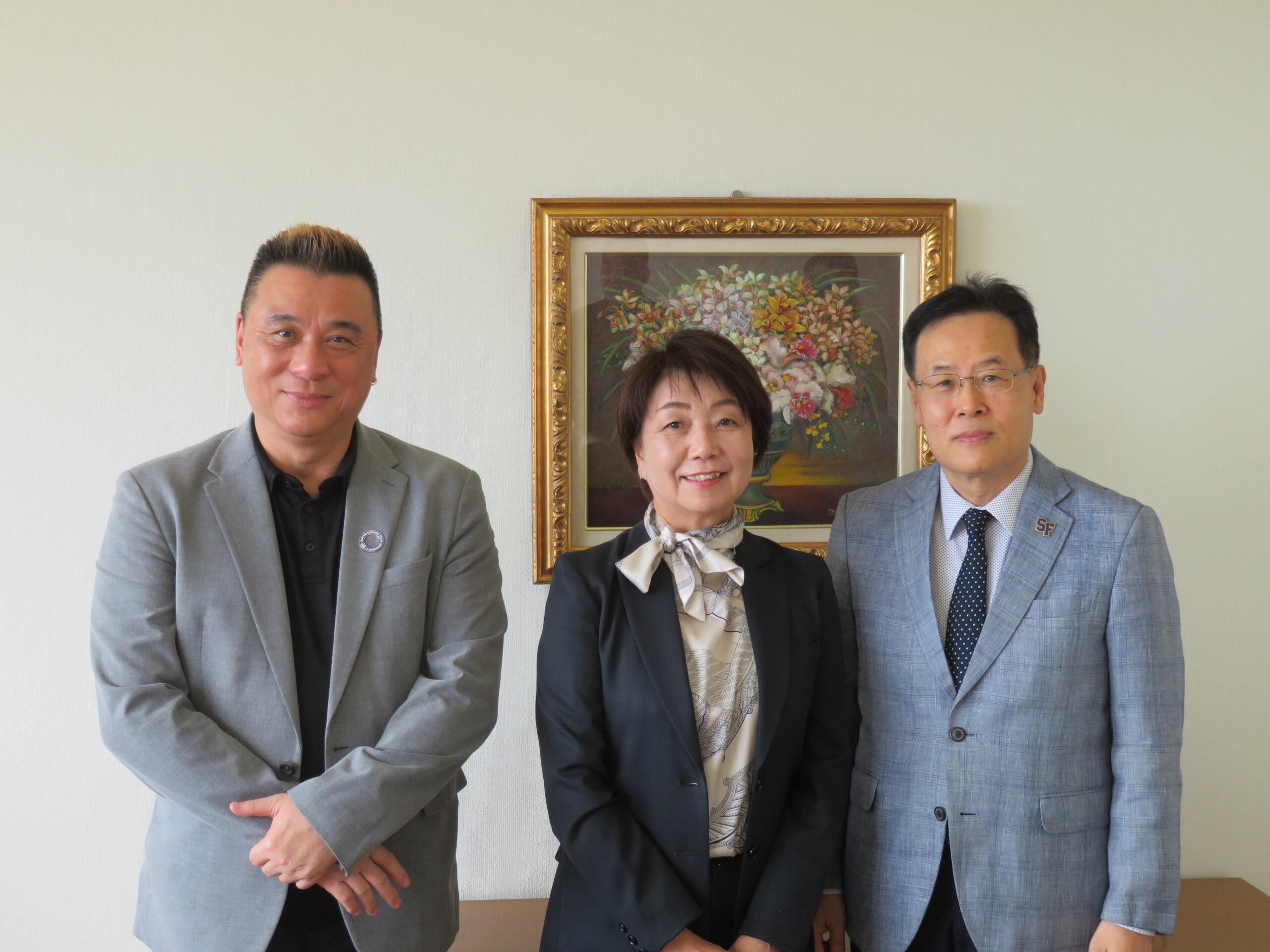 2025年10月21日、サンフランシスコ州立大学の国際交流担当、アレクサンダー先生と、ヨアン先生が、芦屋大学窪田学長を表敬訪問されました。 今回は、夏のSFUショートプログラムに本学から参加した学生がいましたので、御礼と報告のため訪問い...