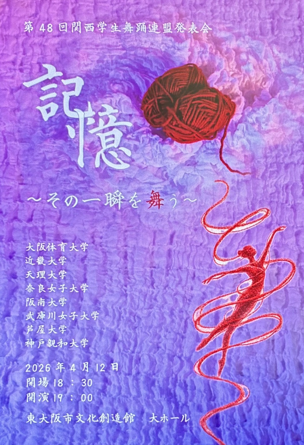 第48回関西学生舞踊連盟発表会に本学バレエコースの学生が出演します
