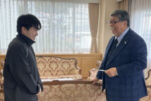 本日は学生会の会長が理事長を訪問し、謝恩会の招待状をお渡し。理事長からは「もちろん、出席させていただきます。」と返事をいただきました。