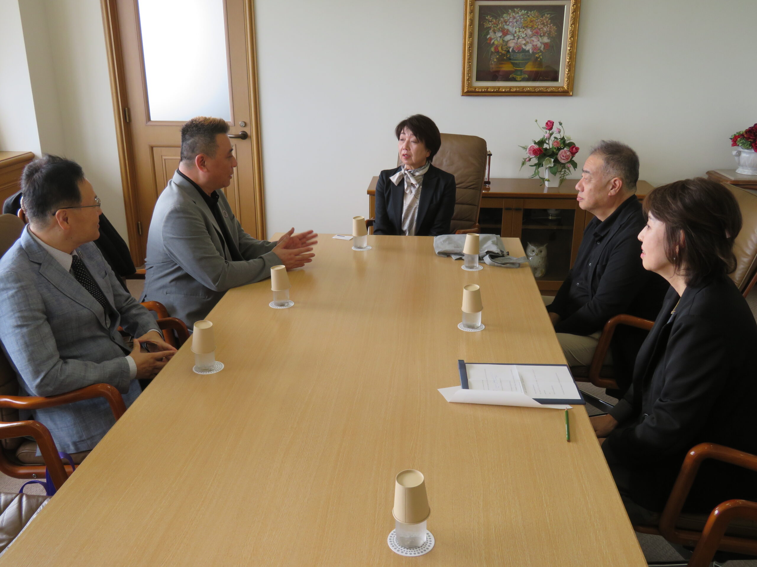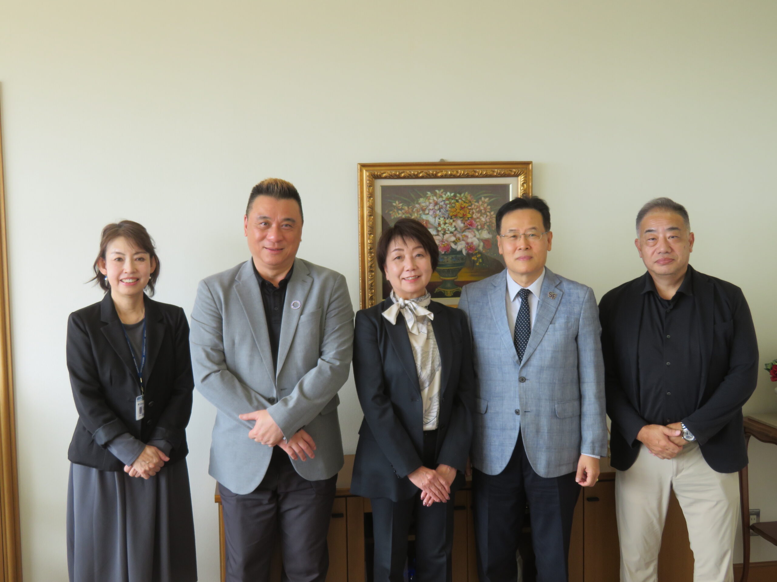 2025年10月21日、サンフランシスコ州立大学の国際交流担当、アレクサンダー先生と、ヨアン先生が、芦屋大学窪田学長を表敬訪問されました。 今回は、夏のSFUショートプログラムに本学から参加した学生がいましたので、御礼と報告のため訪問いただきました。窪田学長とアレクサンダー先生、ヨアン先生で話が弾み、ぜひサンフランシスコ州立大学にお越しくださいとのお話を頂きました。国際交流課では、今後も日本人学生の留学支援を行っていきます。