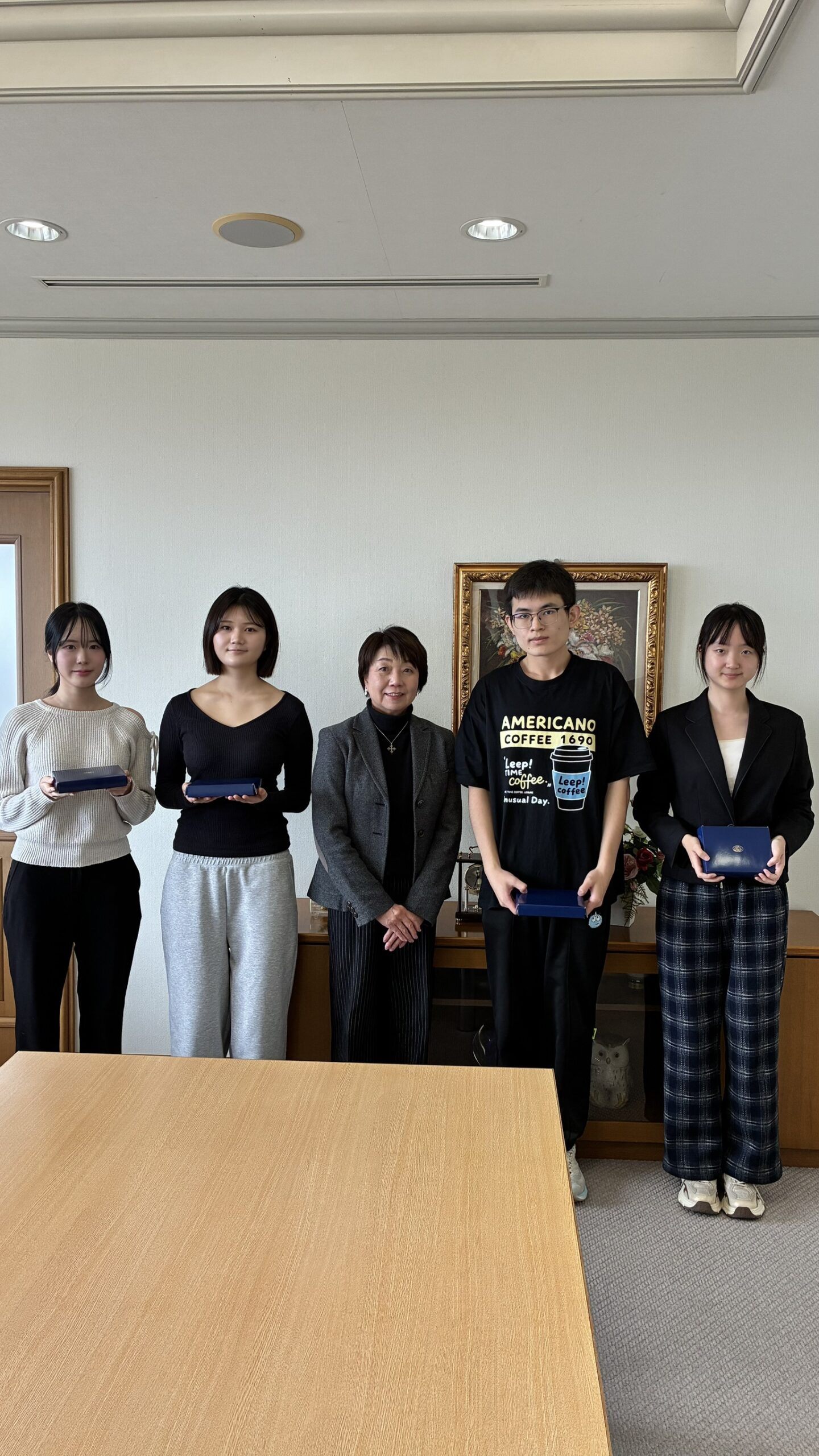 2025年10月21日、サンフランシスコ州立大学の国際交流担当、アレクサンダー先生と、ヨアン先生が、芦屋大学窪田学長を表敬訪問されました。 今回は、夏のSFUショートプログラムに本学から参加した学生がいましたので、御礼と報告のため訪問い...